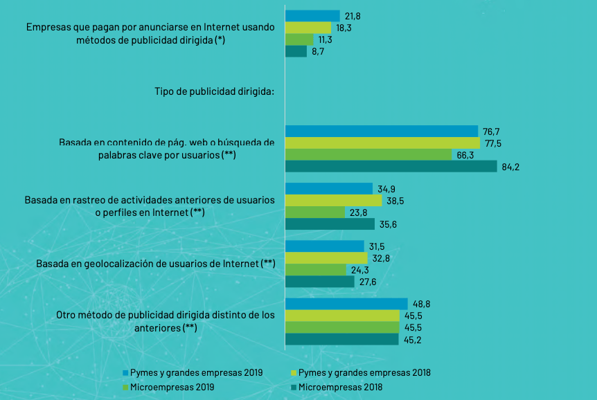 Una de las grandes ventajas de Internet es su gran capacidad de segmentación a la hora de dirigirte y personalizar tu mensaje, contenidos, propuestas etc. Hay sólo un 20% de media de Pymes y grandes empresas que lo estén utilizando , menos aún en microempresas (10%).