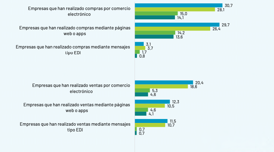 Sólo el 20% de Pymes y Grande empresas han realizado ventas y sólo el 30% compras por comercio electrónico.