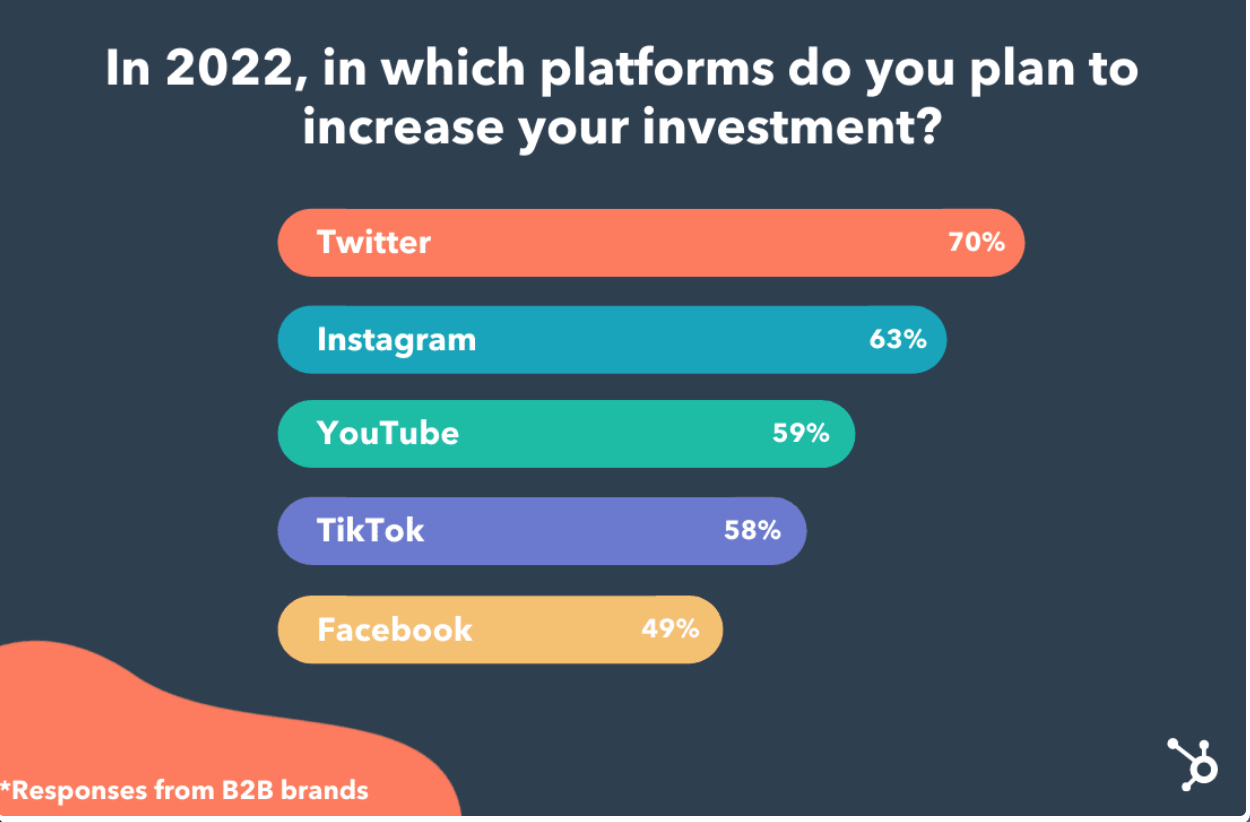 Y no todo es Linkedin, fijaos , también según Hubspot, las apuestas del mundo B2B o Industrial para 2022. Instagram y Twitter ganan su espacio.