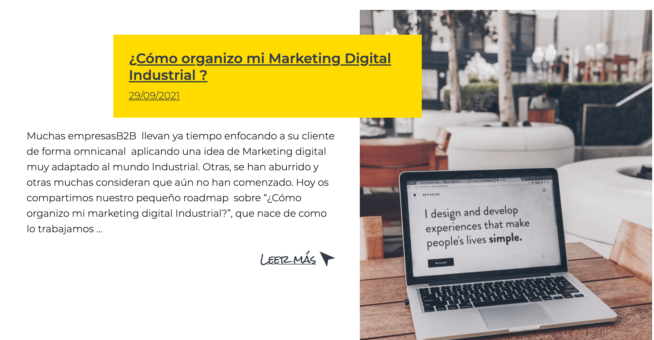 Con nuestros artículos sobre la evolución del Martech B2B   hablando de un caso práctico de Estrella Galicia y  IOT.  y con ¿Cómo organizo mi Marketing digital Industrial?  podéis comprobarlo.