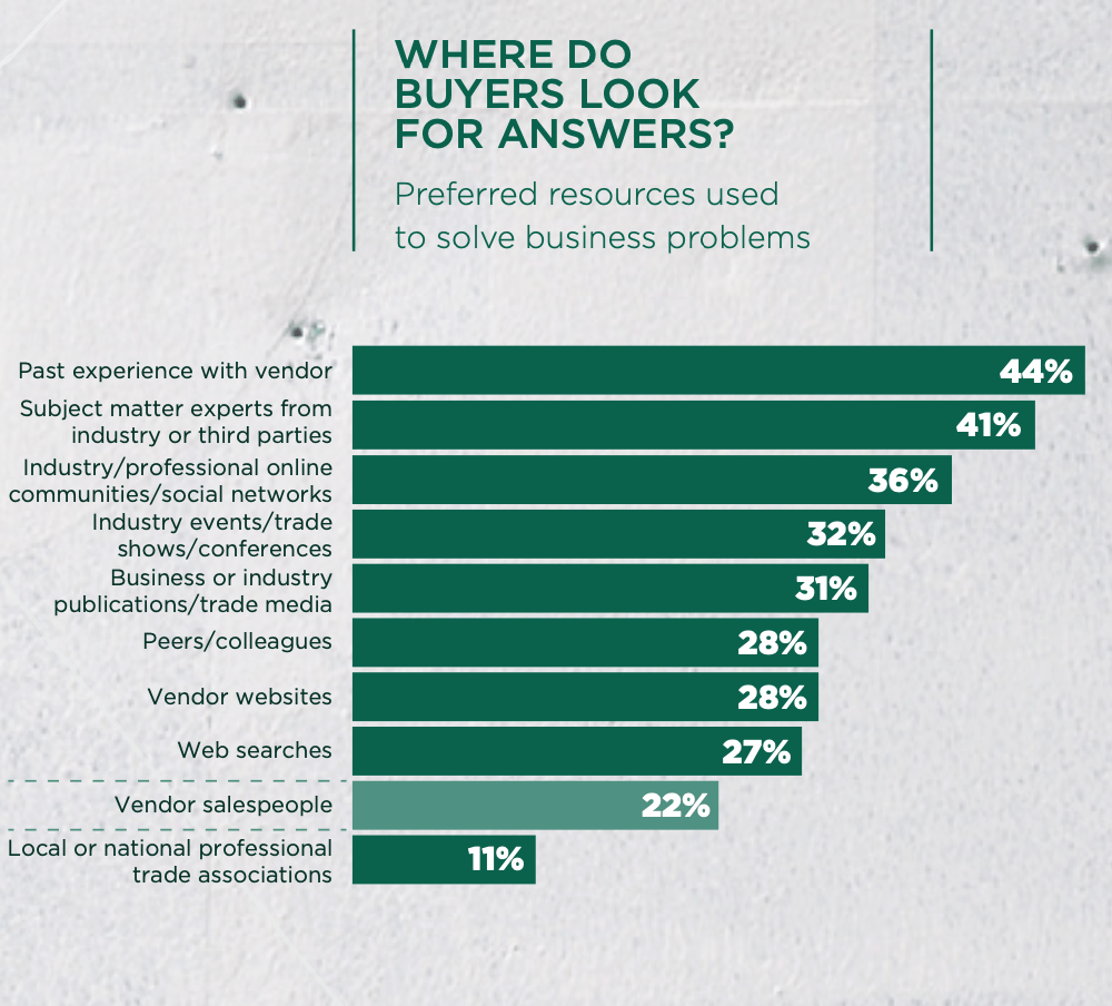 ¿Dónde buscan «respuestas» los compradores hoy en día? Fijaos donde aparece la figura del profesional de ventas B2B, según los profesionales de compras B2B encuestados.