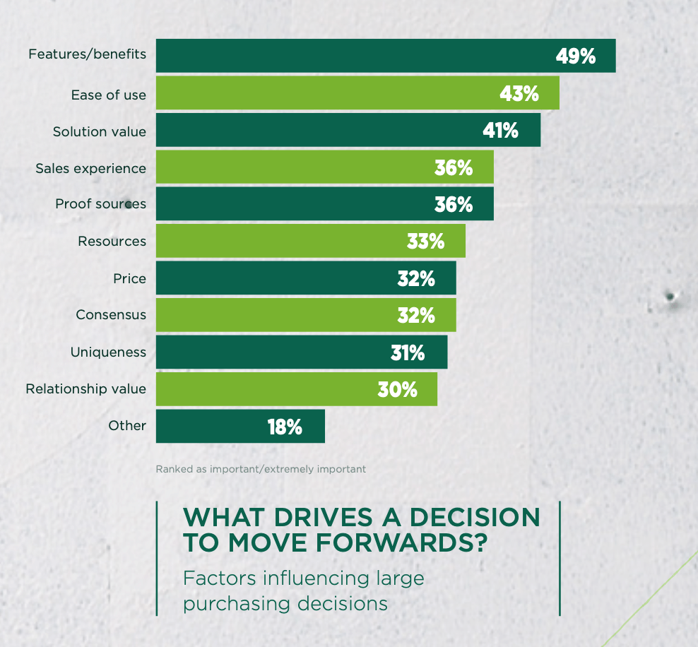 Otro gráfico revelados es el que mostramos justo debajo. ¿Qué impulsa la decisión? Fijaos donde está el precio y todo lo que hay encima. ¿Os imagináis poner en valor todo esto sin la ayuda de medios digitales (LinkedIn por ejemplo) o de Marketing?