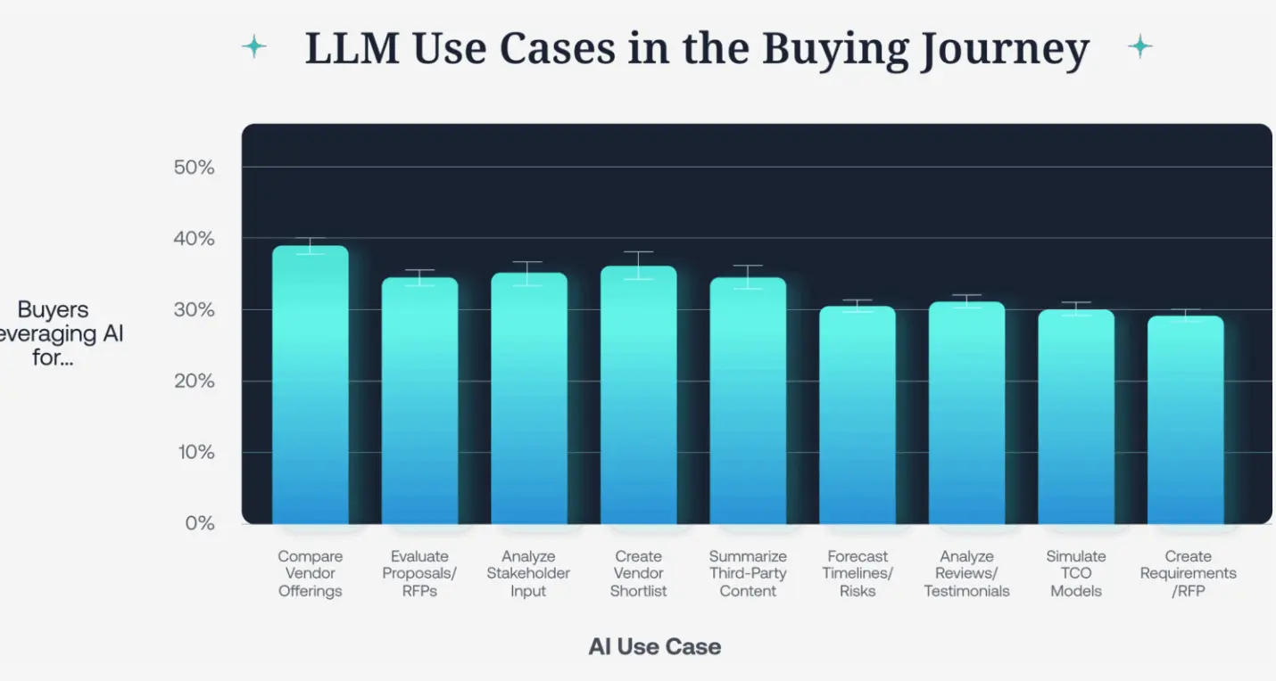 Este insight me parece especialmente relevante por que tiene varias implicaciones acerca de Cómo la IA impacta en el Buying Journey B2B, que veremos en el siguiente punto
