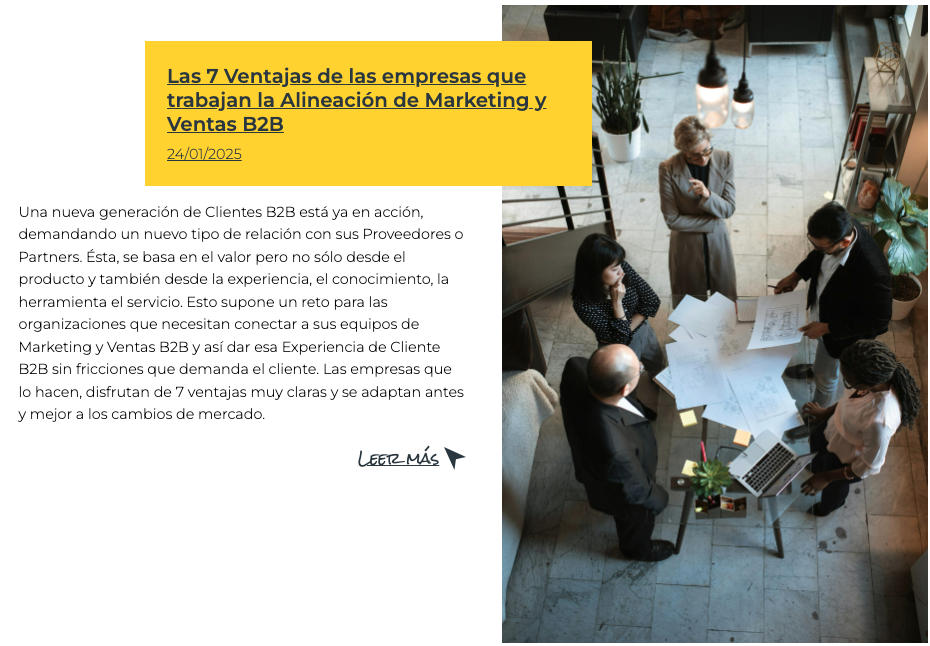 Empezar con esto, es buen punto. Las empresas que trabajan bien la alineación de sus procesos y equipos de Marketing y Ventas B2B tienen una serie de ventajas muy claras.